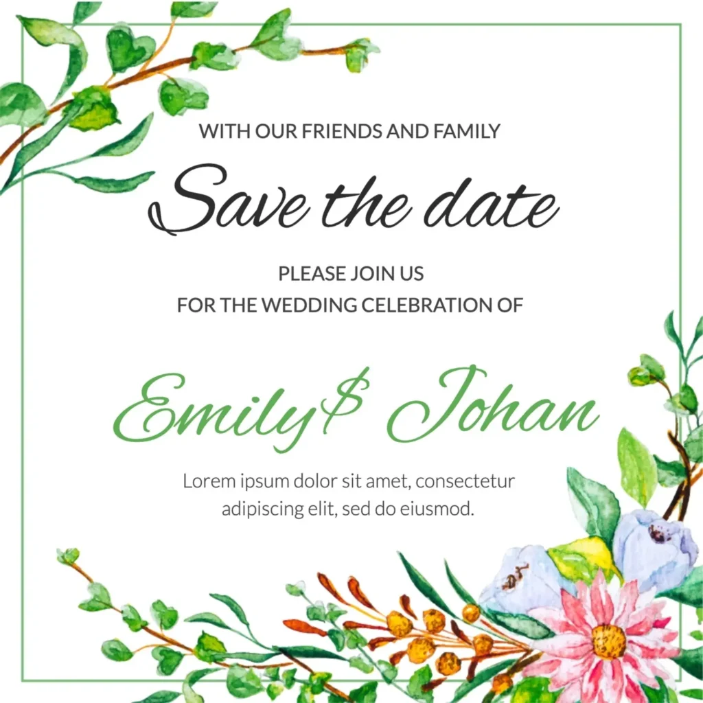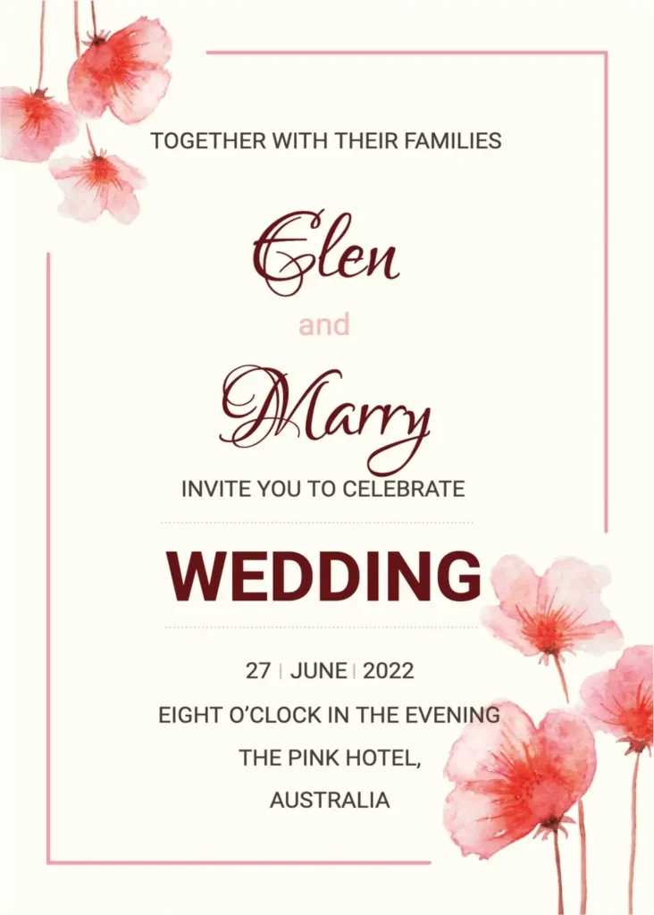 - Add other design elements: Depending on your purposes, you might want your invitations to have different look and feel. Imagery is a good choice to have a unique and personal taste. In the other hand, watercolor elements are great for traditional and natural feels. Try with many versions and combinations to have your perfect one.