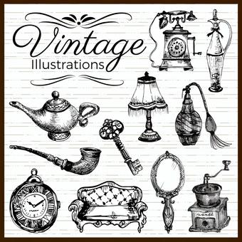 Let’s take a look at some vintage and retro elements that can be download for free from illustAC as below: